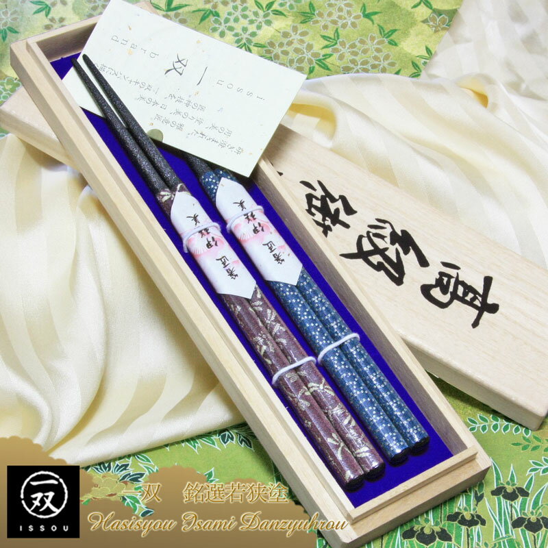 夫婦箸 結婚祝い 桐箱 箸 ペア 二膳セット 高級箸 若狭塗 粋柄 若狭塗 陶彩 一双 ギフト プレゼント 贈り物 両親 金婚式 銀婚式 贈物 内祝い 還暦祝い 古希 喜寿 退職祝い 記念品 お祝い