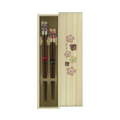 一双 箸 桐箱 夫婦箸 梅飾り 23.5cm・21cm 39283【食器】