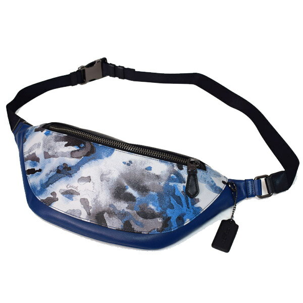 コーチ バッグ COACH メンズ コーティングキャンバス カーフレザー ウォーレン ウォーターカラー 水彩柄 スクリプト プリント ベルトバッグ 2way ワンショルダー バックパック ウエスト ボディバッグ ブルーマルチ 89889【新品 送料無料 誕生日 正規 人気 安心 保証】