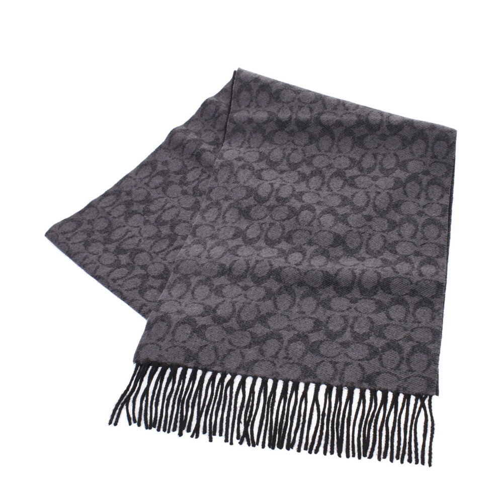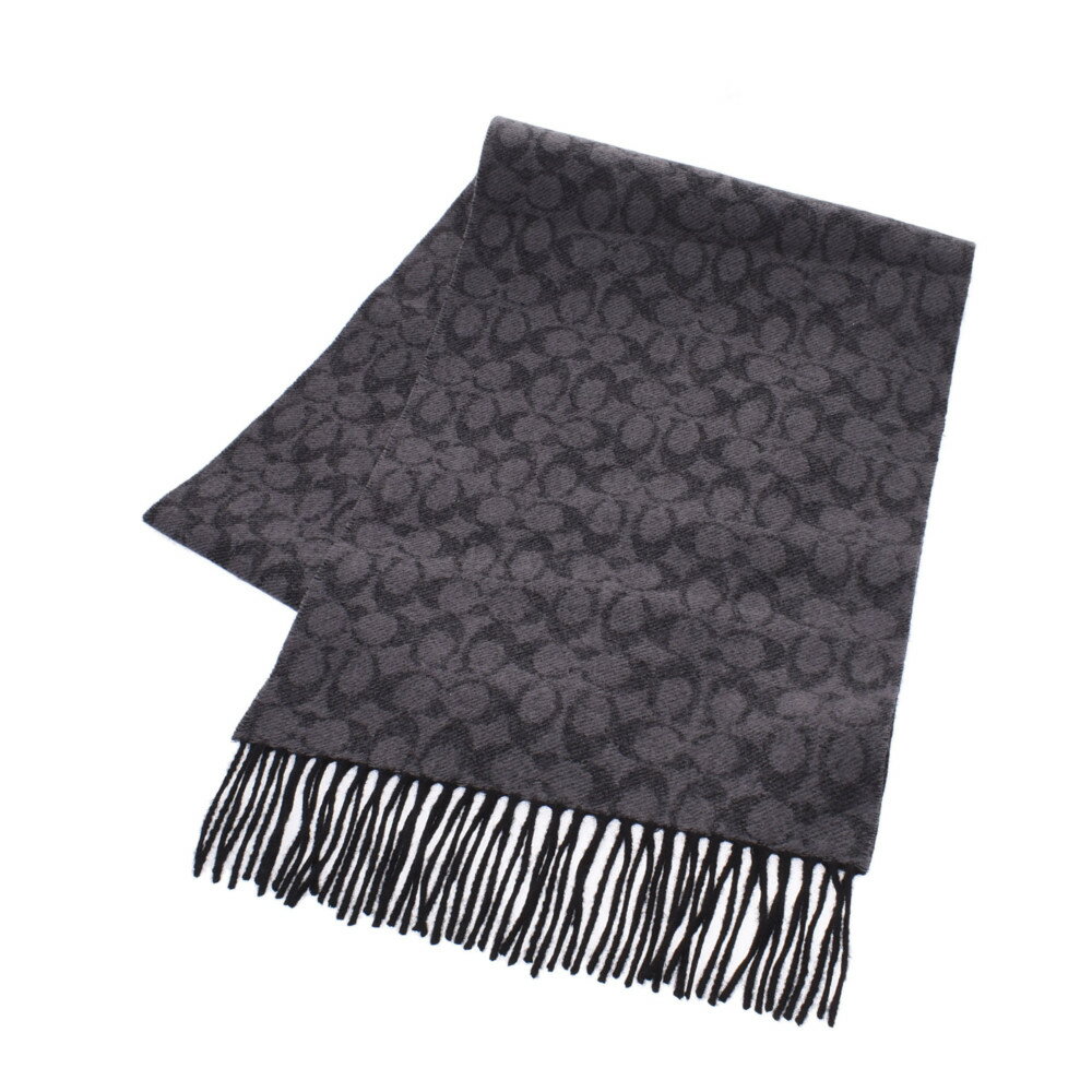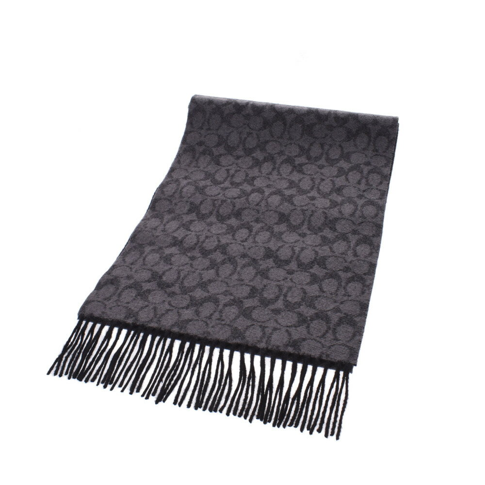 【バレンタインギフト】 COACH コーチ シグネチャー 黒/グレー 76057 ユニセックス ウール95%/カシミヤ5% マフラー 未使用 銀蔵
